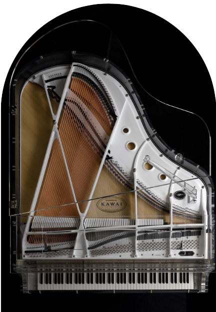 Crystal Grand Piano là kiệt tác giao thoa giữa nghệ thuật thị giác và âm nhạc, được chế tác thủ công tại Nhật Bản theo những tiêu chuẩn khắt khe nhất của Kawai. Gần như toàn bộ thân đàn được làm từ acrylic trong suốt cao cấp, cho phép bạn “nhìn xuyên qua” cây đại dương cầm và chiêm ngưỡng trọn vẹn cơ cấu cơ học tinh xảo bên trong.