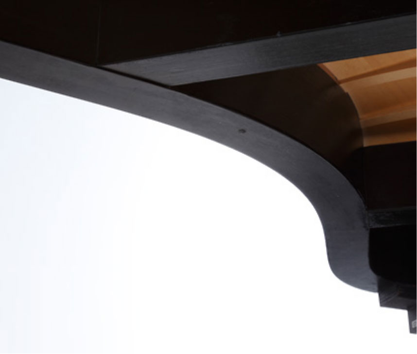 Mỗi bảng cộng hưởng được bào mỏng dần từ trung tâm ra mép ngoài, giúp từng khu vực có độ rung phù hợp để tạo nên sự cộng hưởng lý tưởng. Nhờ đó, âm thanh vừa đầy đặn, vừa cân bằng trên toàn dải tần. Chỉ những bảng cộng hưởng đáp ứng tiêu chuẩn khắt khe nhất về độ ngân vang mới được lựa chọn để trang bị cho đàn grand piano GX series.